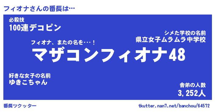 意味不明あだ名 | 『ペロリンフィオナ』『永久保存フィオナ』 |
