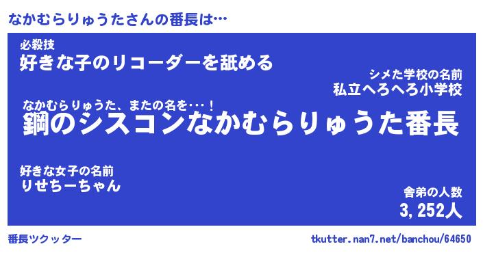 | 肩書あだ名 | 『なかむらりゅうたCEO』 |