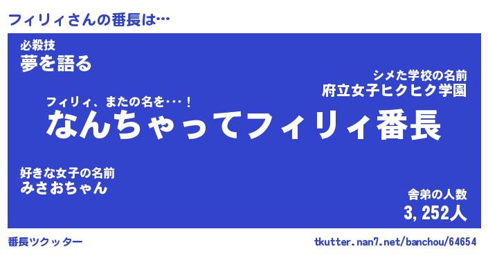 | 意味不明あだ名 | 『ペロリンフィリィ』『永久保存フィリィ』 |