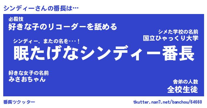 | 伝説のあだ名 | 『封印されしスナイパーシンディー』 |