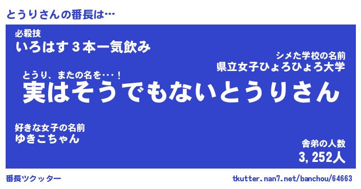 | 肩書あだ名 | 『とうり社長』『とうり総理大臣』 |