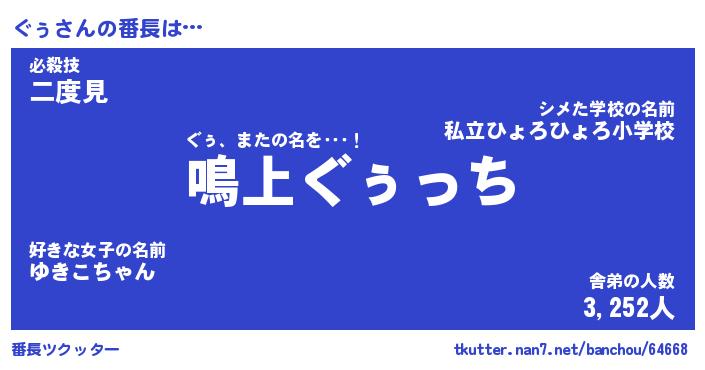 | ヘコむあだ名 | 『ぐぅふぇ~』『酢こんぶ』『ぐぅを』 |