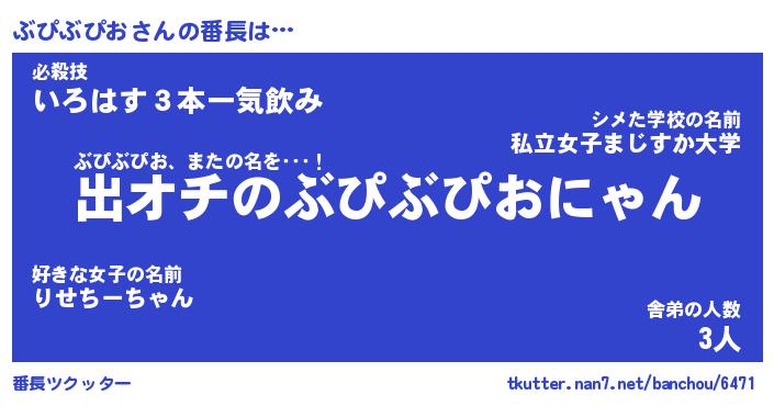 | ヘコむあだ名 | 『ぶぴっふぃ~』『なまこ酢』 |