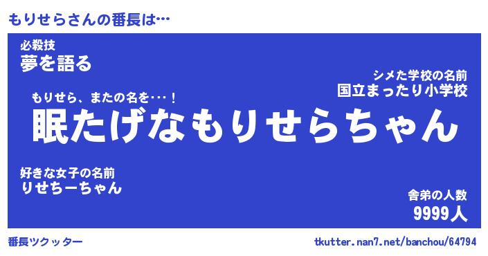 | 伝説のあだ名 | 『封印されしスナイパーもりせら』 |