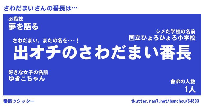 | 肩書あだ名 | 『さわだまい社長』『さわだまい総理大臣』 |