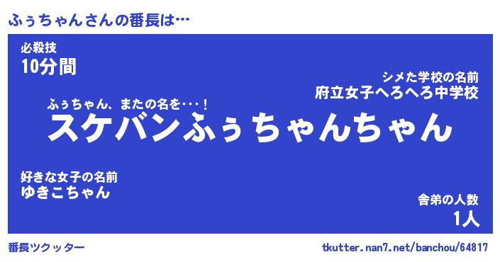 | ファンタジー風あだ名 | 『フゥフェル』『エターナルフゥチャンー』 |