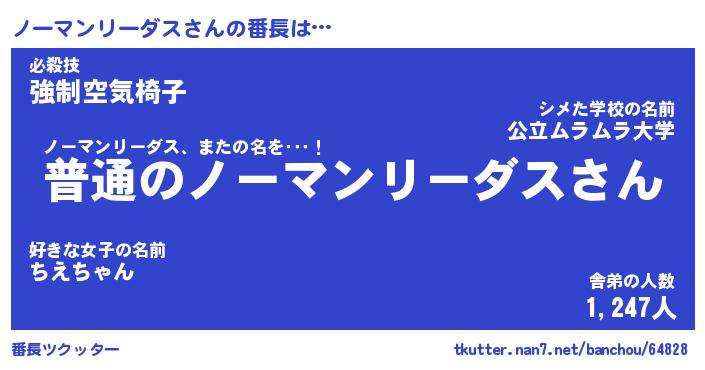 | ポケモン風あだ名 | 『ノーチュウ』『ノーマダネ』 |