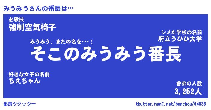 | ポケモン風あだ名 | 『ミウチュウ』『ミウミダネ』 |