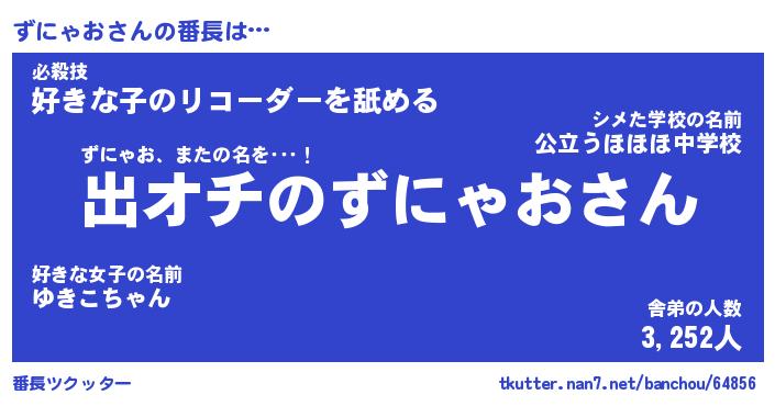 | 意味不明あだ名 | 『ペロリンずにゃお』『永久保存ずにゃお』 |