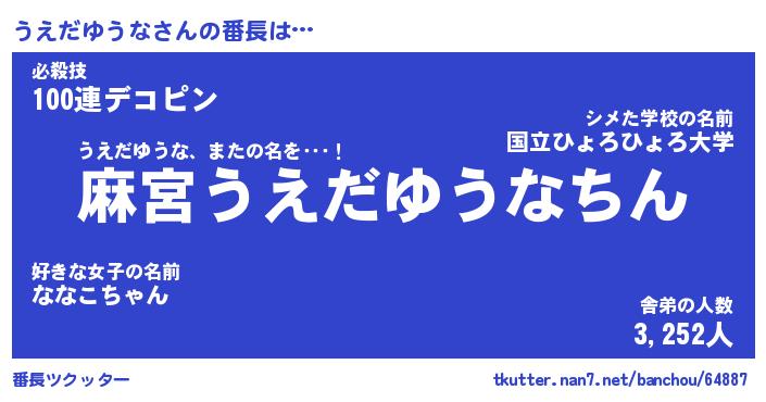 | ヘコむあだ名 | 『うえもー』『つくし』『うえ太郎』 |