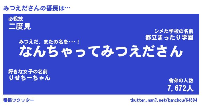 | 意味不明あだ名 | 『ペロリンみつえだ』『永久保存みつえだ』 |