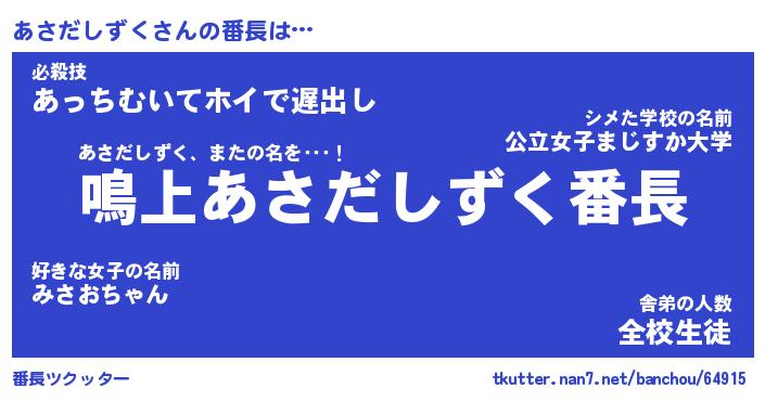 | 伝説のあだ名 | 『封印されしスナイパーあさだしずく』 |
