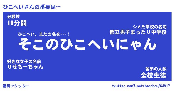 | 意味不明あだ名 | 『ペロリンひこへい』『永久保存ひこへい』 |