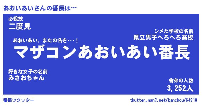 | ヒーロー風カッコイイあだ名 | 『スーパーアオイアイ』『幻影騎士アオ』 |