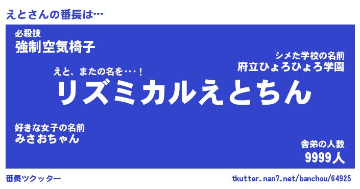 | 肩書あだ名 | 『えと御曹司』『えと国家主席』 |