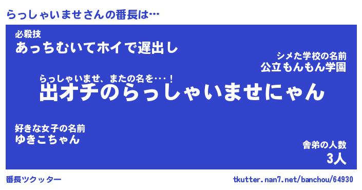 | 肩書あだ名 | 『らっしゃいませ御曹司』 |