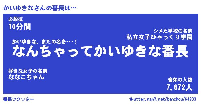 | 男性向けラノベタイトル風あだ名 | 『かいゆきなの憂鬱』 |