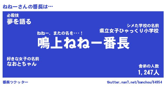 | 意味不明あだ名 | 『ペロリンねねー』『ねねーフォーエバー』 |