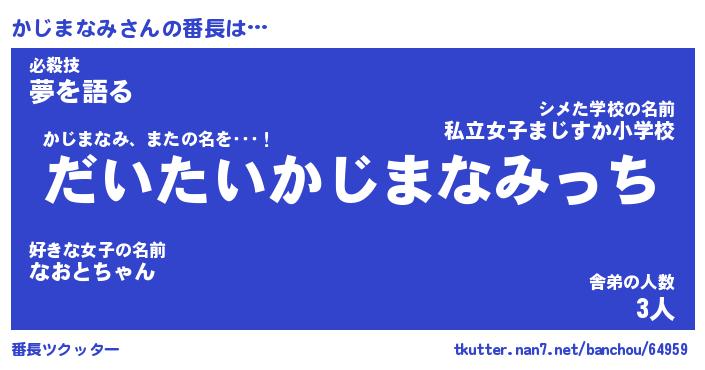 | 肩書あだ名 | 『かじまなみ御曹司』『かじまなみ塾長』 |