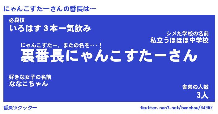 | 2回繰り返すあだ名 | 『にゃにゃ』『ににゃゃ』『おらおら』 |
