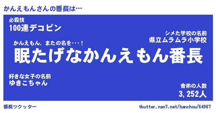 | ヒーロー風カッコイイあだ名 | 『スーパーカンエモン』『黄金騎士カン』 |