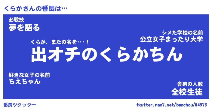 | 肩書あだ名 | 『くらか御曹司』『くらか国家主席』 |