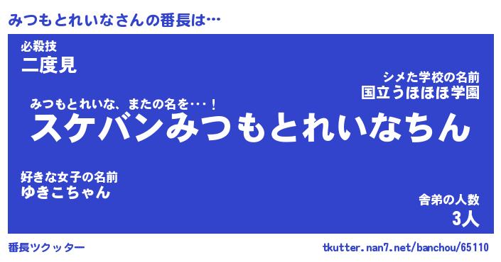 | ポケモン風あだ名 | 『ミツチュウ』『ミツモダネ』 |