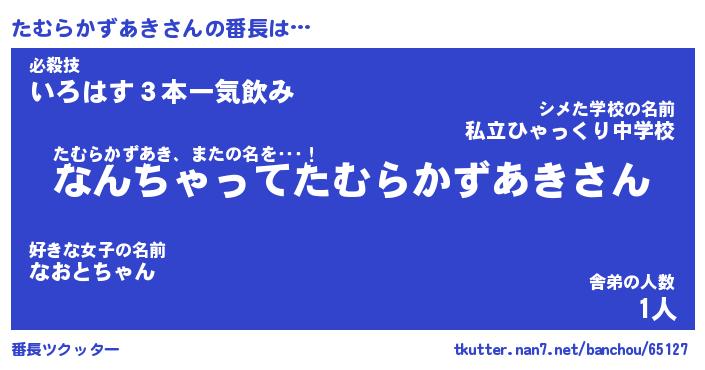 | 男性向けラノベタイトル風あだ名 | 『たむらかずあきの憂鬱』 |