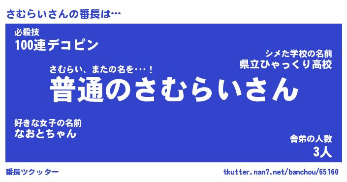 | ヘコむあだ名 | 『さむにゅー』『豆乳』『さむを』 |