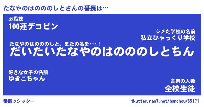 | 肩書あだ名 | 『たなやのはのののしと社長』 |