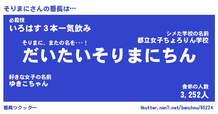 | 肩書あだ名 | 『そりまに店長』『そりまに国家主席』 |