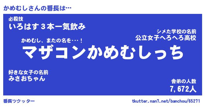 | ファンタジー風あだ名 | 『カメフェル』『エターナルカメムシー』 |