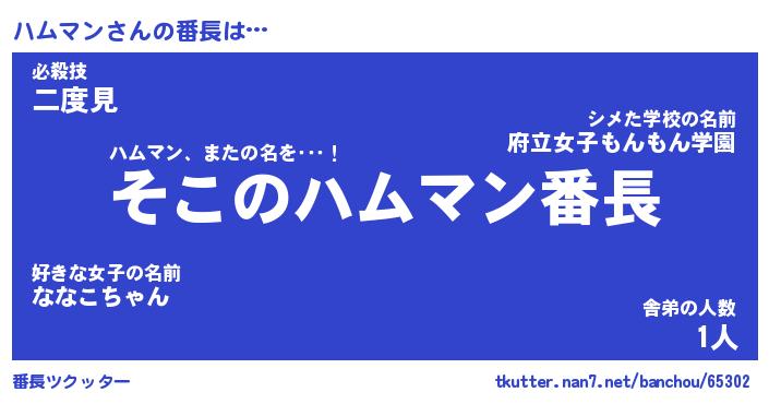 | 意味不明あだ名 | 『ペロリンハムマン』『永久保存ハムマン』 |