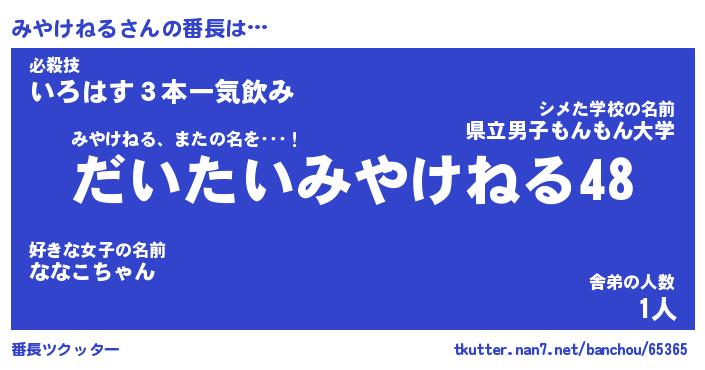 | ファンタジー風あだ名 | 『ミヤフェル』『エターナルミヤケネルー』 |