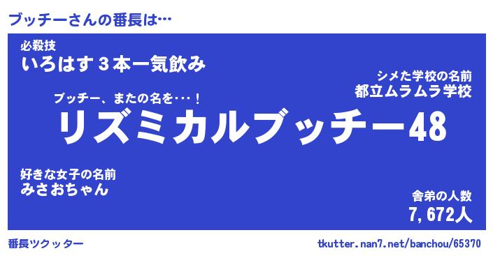 | 意味不明あだ名 | 『ペロリンブッチー』『永久保存ブッチー』 |
