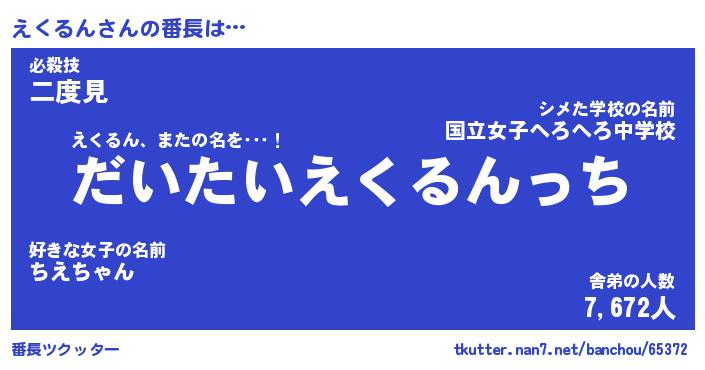 | 2回繰り返すあだ名 | 『えくえく』『ええくく』『ねちねち』 |