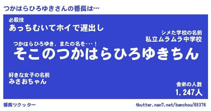 | ヒーロー風カッコイイあだ名 | 『スーパーツカハラヒロユキ』 |