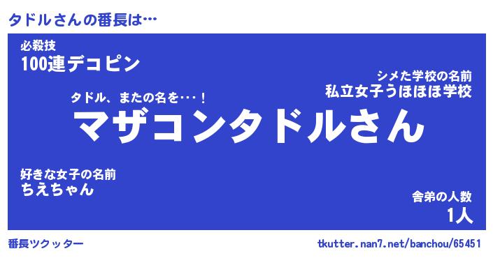| ヒーロー風カッコイイあだ名 | 『スーパータドル』『ウルトラタドルマン』 |