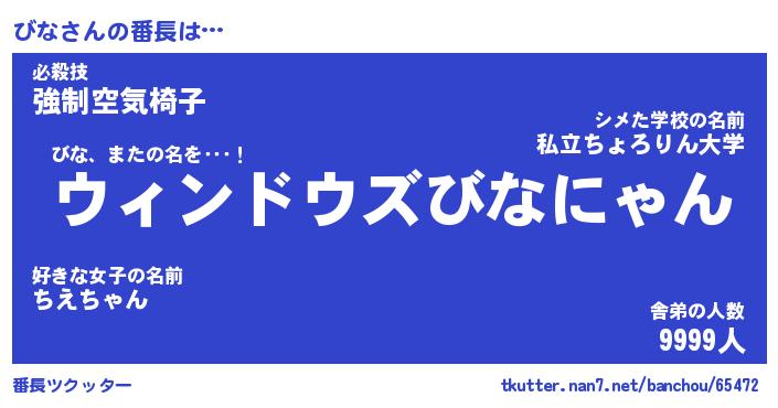 | ファンタジー風あだ名 | 『ビナフェル』『エターナルビナー』 |