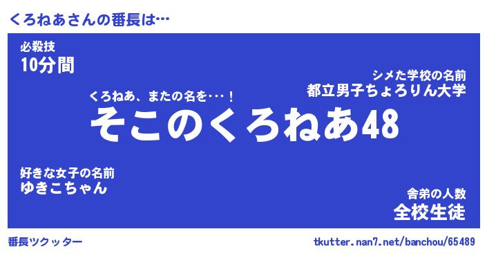 | 肩書あだ名 | 『くろねあ御曹司』『くろねあ大統領』 |