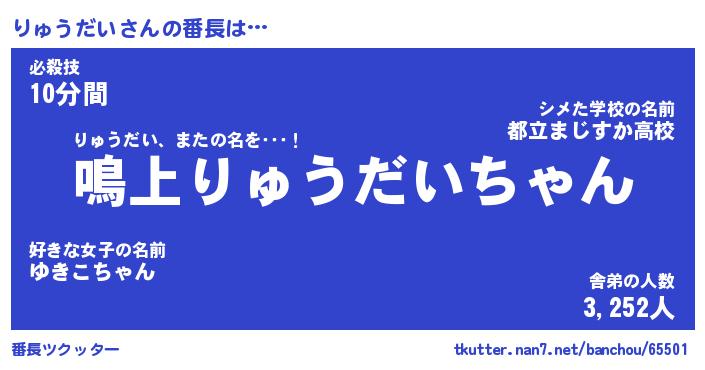| 肩書あだ名 | 『りゅうだいCEO』『りゅうだい総理大臣』 |