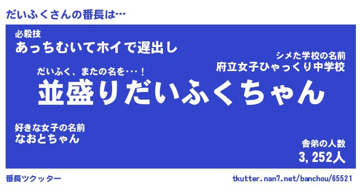 | 欧米人風あだ名 | 『マイケルだいふく』『ウサインだいふく』 |