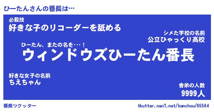 | 伝説のあだ名 | 『伝説のスナイパーひーたん』 |