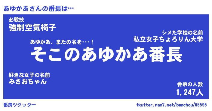 | 意味不明あだ名 | 『ペロリンあゆかあ』『永久保存あゆかあ』 |