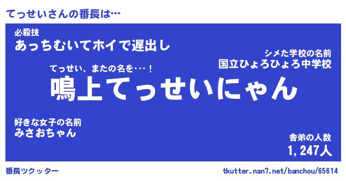 | 意味不明あだ名 | 『ペロリンてっせい』『永久保存てっせい』 |