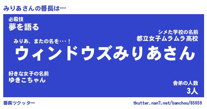 | 肩書あだ名 | 『みりあ社長令嬢』『みりあ大統領』 |