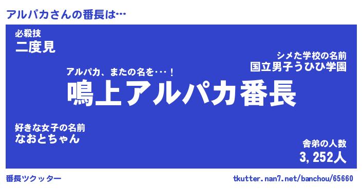 | 意味不明あだ名 | 『ペロリンアルパカ』『永久保存アルパカ』 |