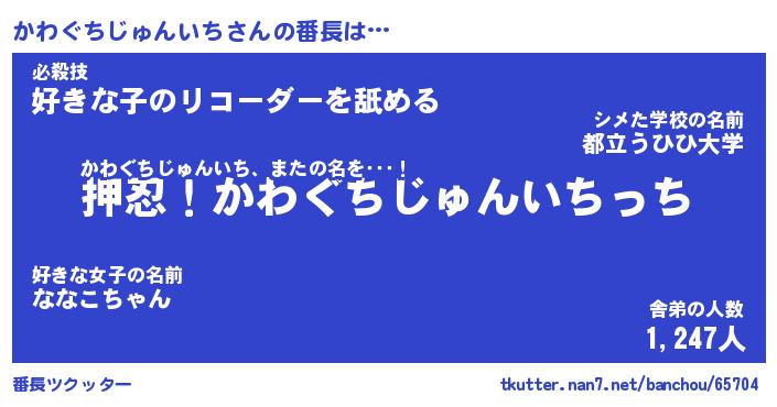 | 伝説のあだ名 | 『封印されし竜騎士かわぐちじゅんいち』 |