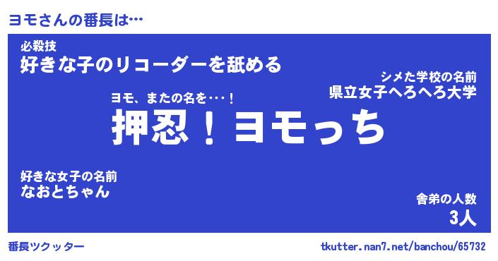 | ポケモン風あだ名 | 『ヨモチュウ』『ヨモダネ』『ヒヨモ』 |