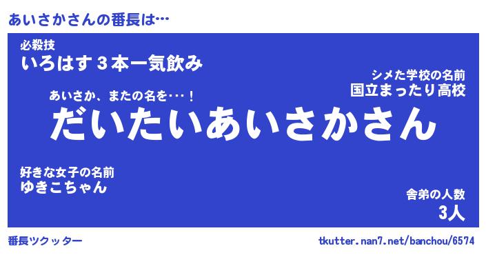 | 肩書あだ名 | 『あいさか店長』『あいさか総理大臣』 |